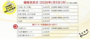 また、別の理由といたしまして、浜名湖などからより良い鰻を入荷できるようになり、サイズも大きくなる為、うなぎ料理の価格も上げる事となりました。