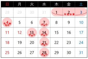 お知らせ 2026.01.02 1月営業日のお知らせ あけましておめでとうございます。 旧年中はたくさんのお客様にご来店いただき、心より感謝申し上げます。 新年は1月5日より営業します。 本年もうなぎやをどうぞよろしくお願い申し上げます。